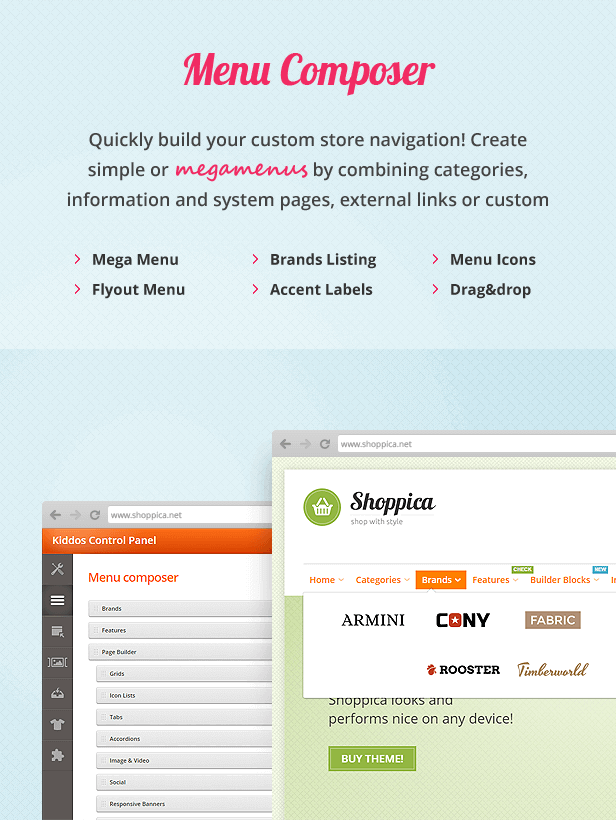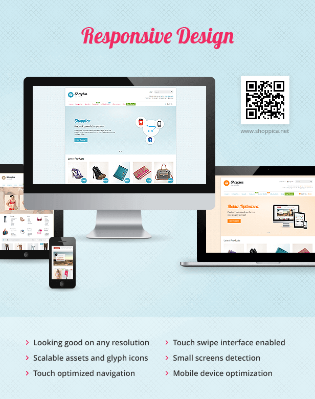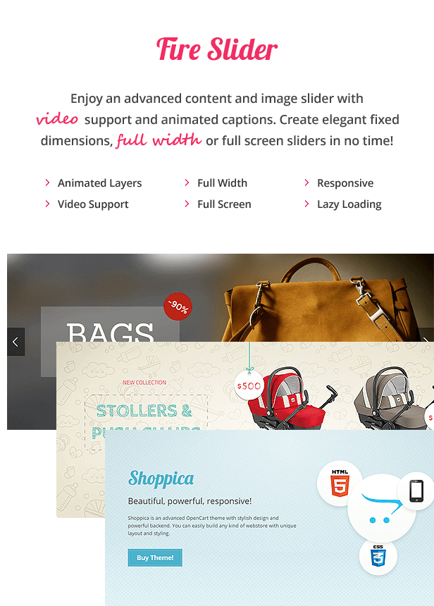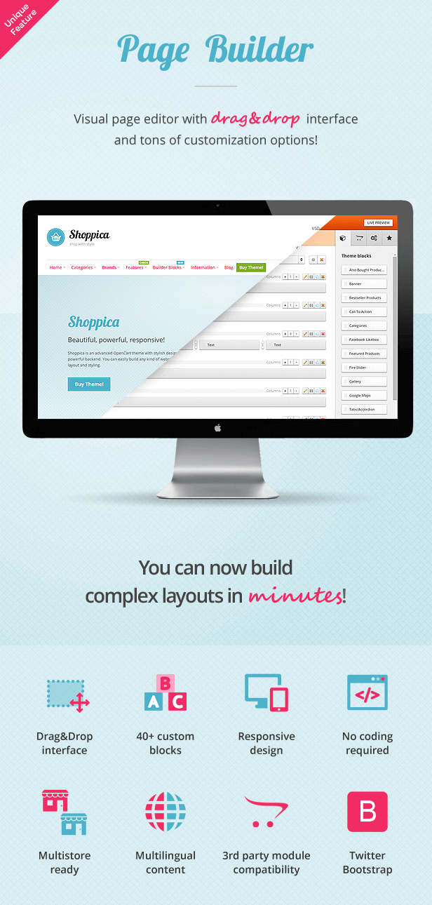 Shoppica is a fully responsive multi-purpose OpenCart theme with stylish design and powerful backend. The clean and modern look allows you to use the theme for every kind of online shop. In combination with the super powerful administration panel packed with tons of options, you have the right tool to create a unique e-commerce website that stands out of the crowd!