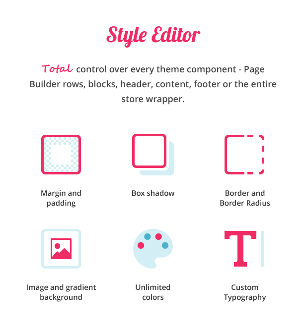 Custom FontsBoost your site with 630+ weboptimized Google fonts with customizable style, size, letter or word spacing. Set a global line height and all elements will be automatically adjusted. |