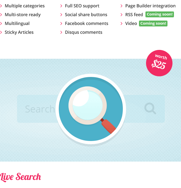 Powerful article system to manage blog/news for your online store to generate more traffic and sales for your business. Packed with all the features that you need to informn and interact with your customers! Intuitive and simple to use back-end interface. Beatiful front-end. Don’t forget – blogging helps you rank in search engines.