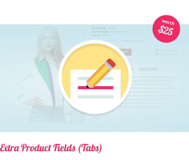 Extra Product Fields (Tabs) allows you to add an unlimited number of custom fields to your product form. If you are looking to allow your customers to download an installation manual or display extra details about your product, this extension is just what you need!