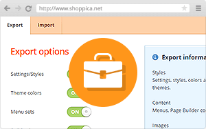 Import/Export ToolQuickly export and transfer yourcustom theme configuration to another store! Choose between different export options. |
