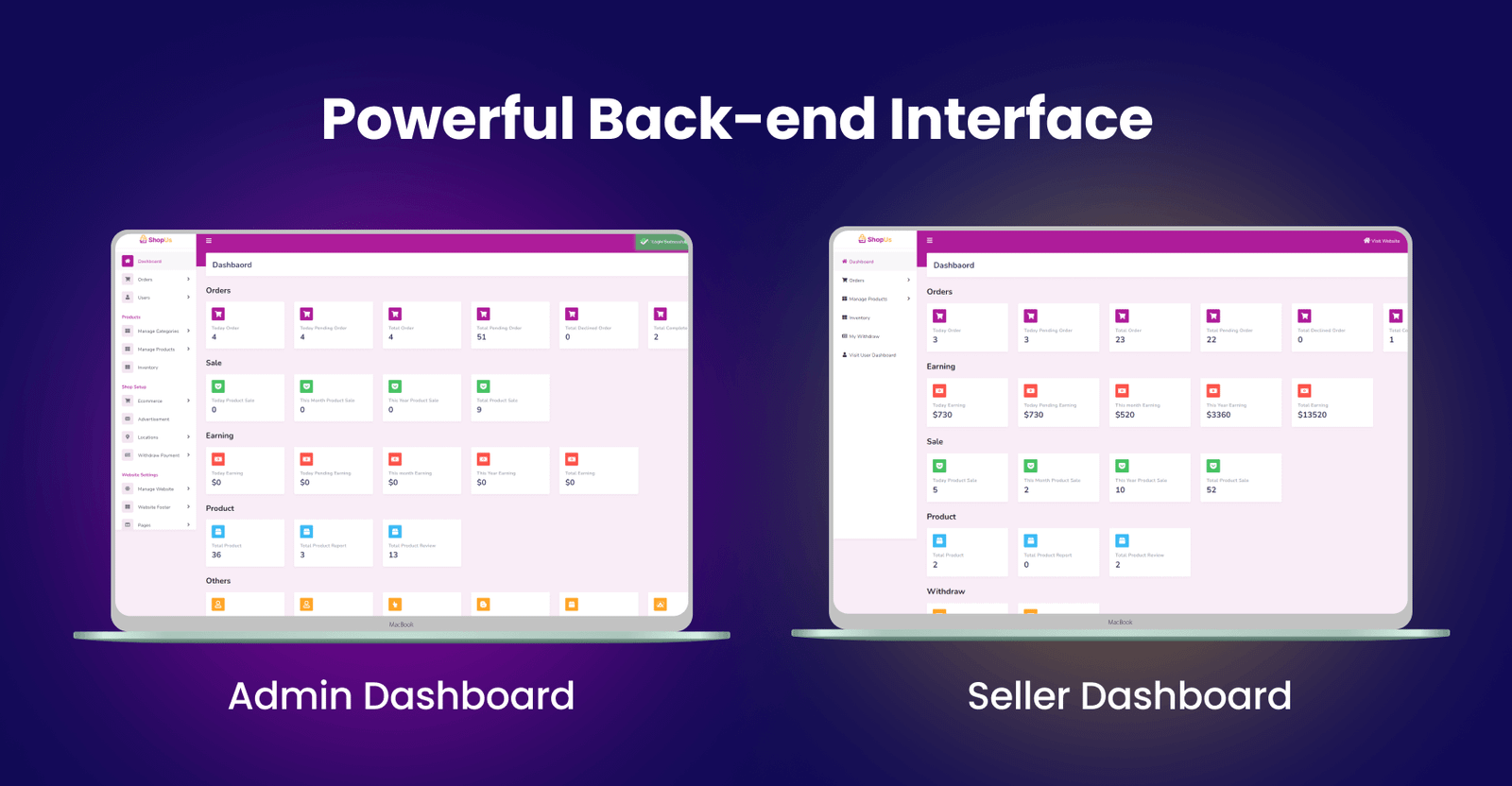 ShopUs – Laravel Multivendor Fashion eCommerce Website ADMIN FEATURES: