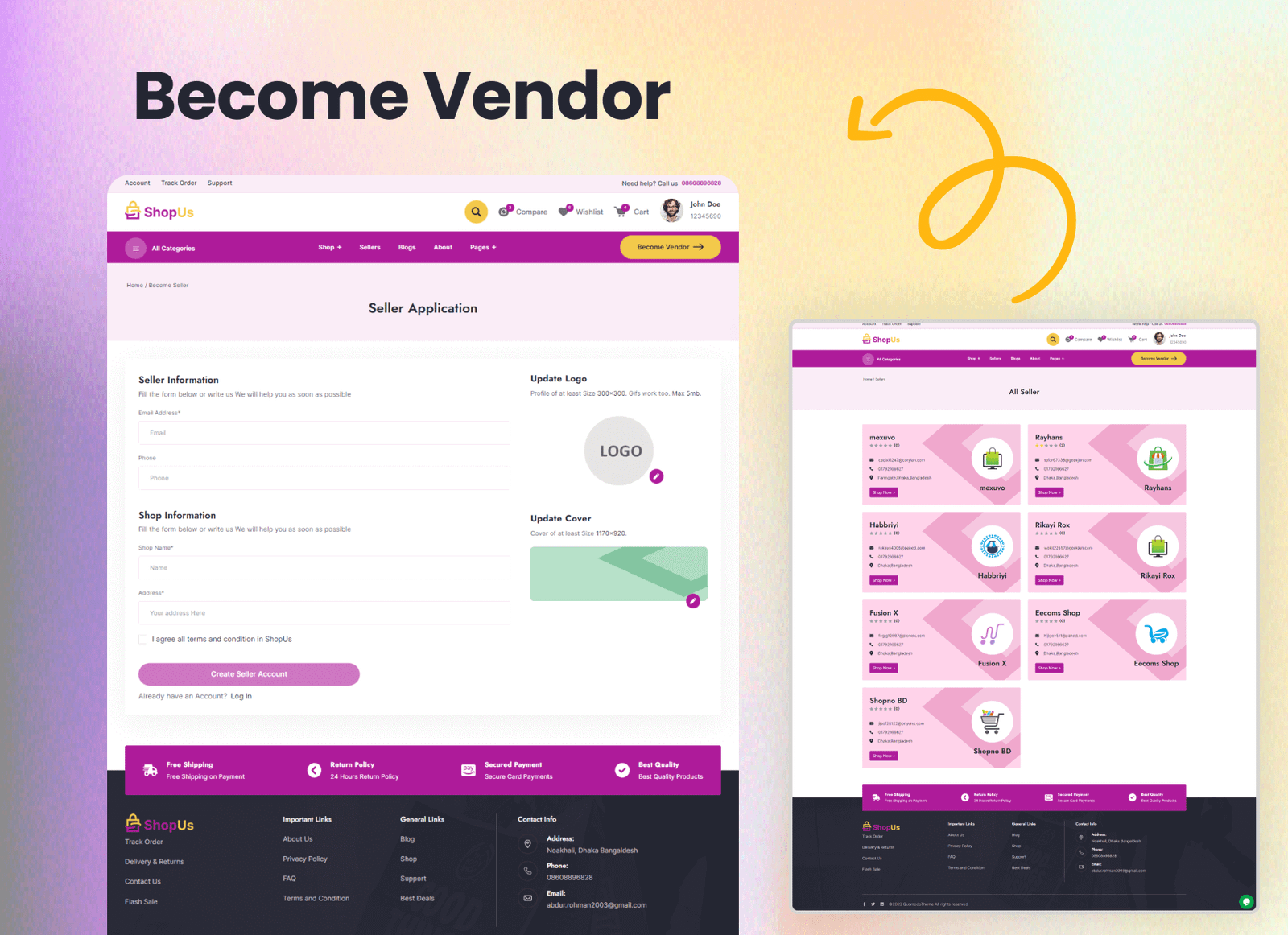 ShopUs – Laravel Multivendor Fashion eCommerce Website Key Features: