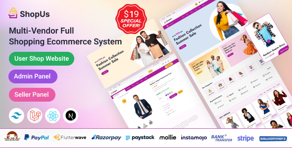 ShopUs – Laravel Multivendor Fashion eCommerce Website eCommerce platforms are gaining more and more popularity nowadays and we keep maintaining all the demands of our users. The script has unlimited categories, brands, products, attributes. coupons, orders, category create options. It comes with 9 payment gateways, full content management system, SEO, order tracking system, and more.