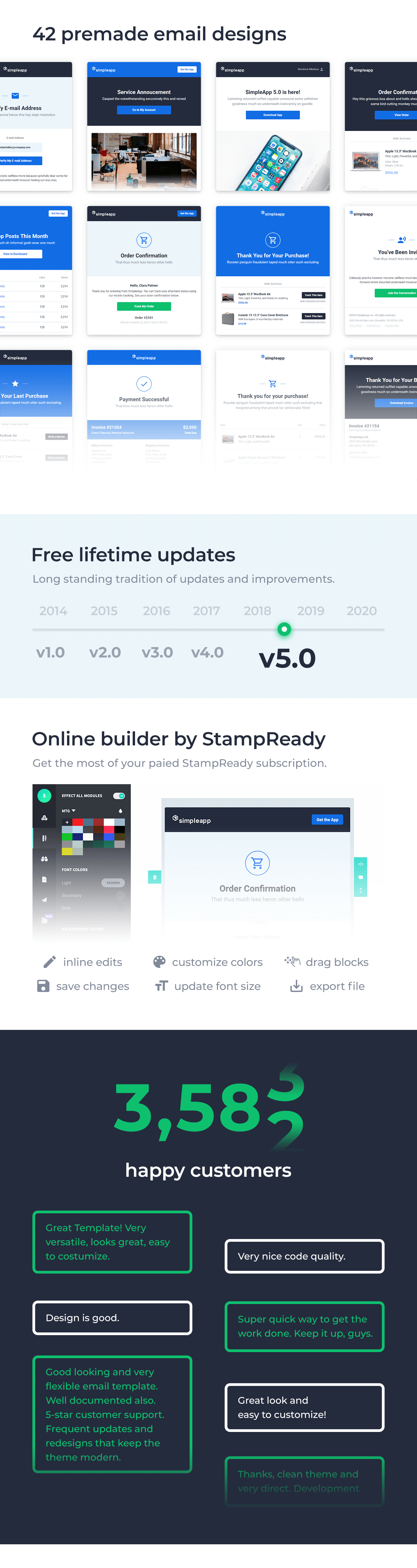 Flexible email HTML templates for all your app’s notification needs. Packed with 4 layout types, handy branding options, 20 cover styles, store and invoice layouts, feedback alerts, divers content blocks, finger-friendly buttons and imporved accessibility.