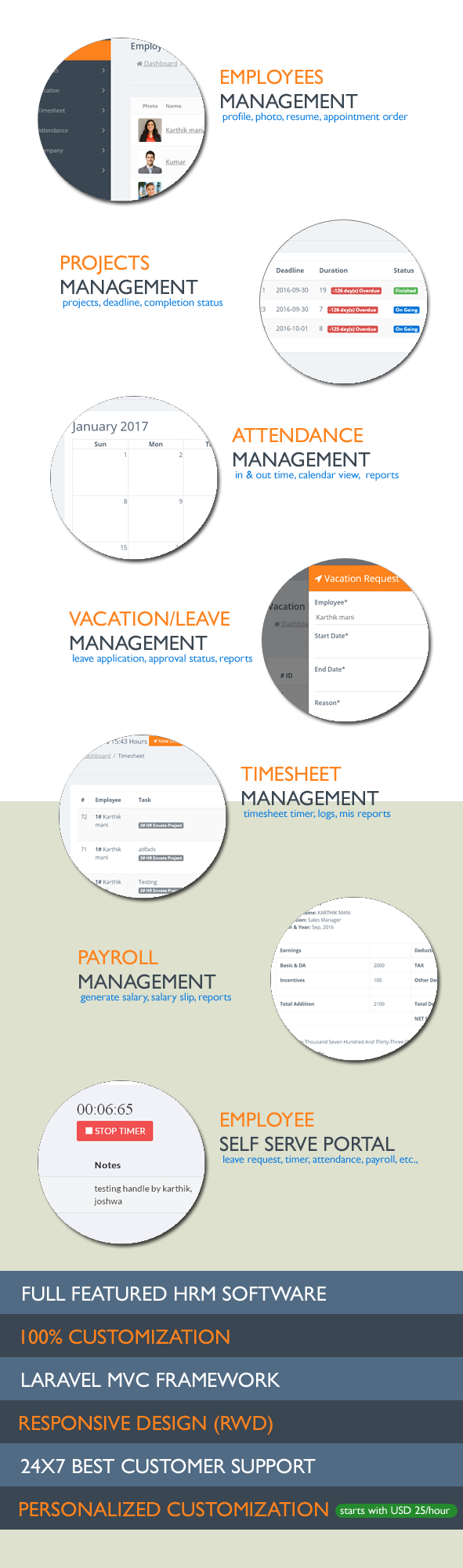 Version 1.8 - 25.03.2023 --------------------------------------------------------------------------- *Fixed - Version Compatible with PHP 8, Removed Deprecated Packages *Upgraded - Laravel 8 Version 1.6 - 06.10.2020 --------------------------------------------------------------------------- *Fixed - Minor Bugs, UI FixesInput, Image Bugs, Database fields *Added - Complete Localizaton Added, French Language Added. Version 1.4 - 17.12.2019 --------------------------------------------------------------------------- *Fixed - Input, Image Bugs, Database fields *Revamped - Admin Dashboard, Overall Table style, *Added - Admin Email Change option, Dashboard Time chart Update Instructions: --------------------------------------------------------------------------- * Replace App, Config, Resources,Public and Vendor folders Version 1.3 - 21.11.2019 --------------------------------------------------------------------------- *Updated - PHP 7 (compatible with all newer PHP versions) *Updated - Laravel 5.2 *Fixed - Timer *Enriched PaySlips and Appointment letters *Revamped UI Update Instructions: --------------------------------------------------------------------------- * Replace App, Config, Resources,Public and Vendor folders * Replace composer.json & composer.lock Version 1.2 - 20.11.2018 --------------------------------------------------------------------------- *Fixed - Minor Bugs Update Instructions: --------------------------------------------------------------------------- * Replace App, Resources,Public and Vendor folders * Replace composer.json & composer.lock Version 1.1 - 02.02.2017 --------------------------------------------------------------------------- UI Changes Fixed Bugs Update Instructions: --------------------------------------------------------------------------- * Replace App, Resources,Public and Vendor folders * Replace composer.json & composer.lock Version 1.0 - 04.10.2016 --------------------------------------------------------------------------- First Release