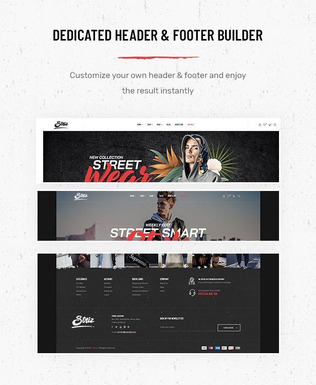 Not only outstanding with elegant, clean and modern layout designs, Striz definitely satisfy you with advanced features insight. Let’s see what makes it become a dedicated fashion store WordPress theme for your street styles and trends.