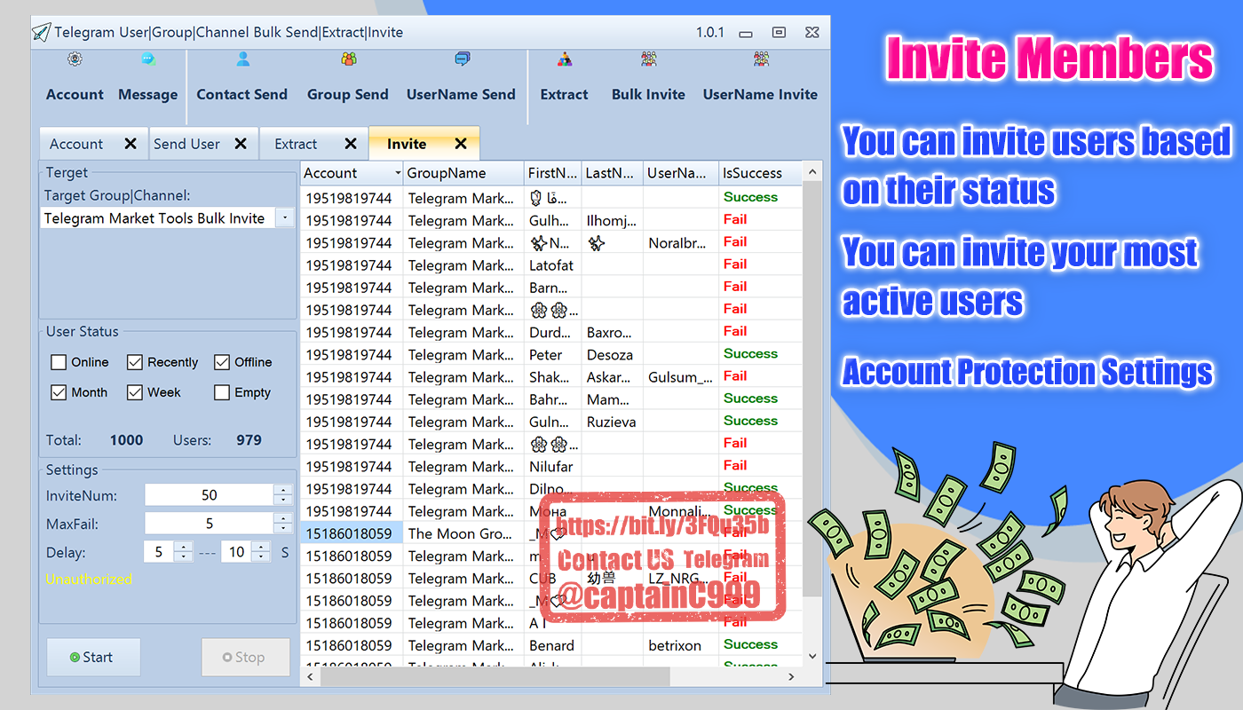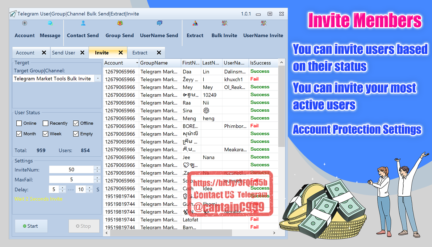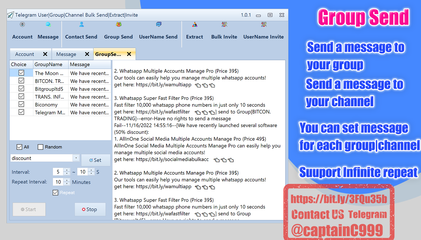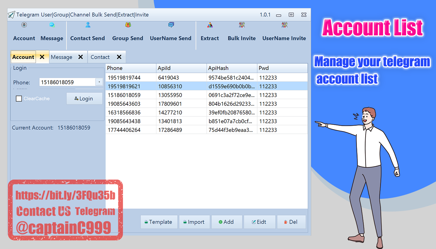 Bulk Account Manage,Bulk Message,Bulk Send Message,Bulk Extract Members, Bulk Invite Members etc