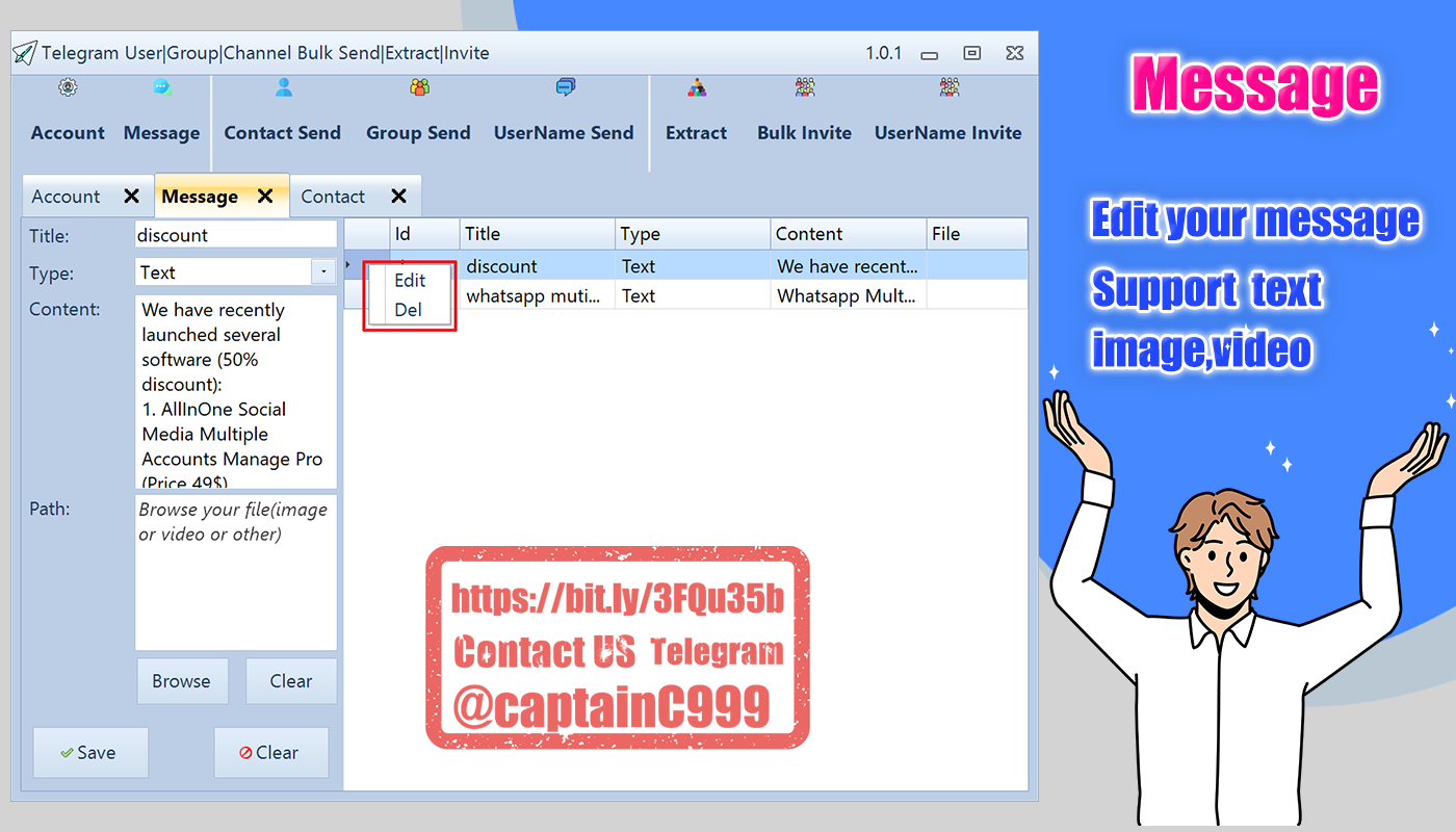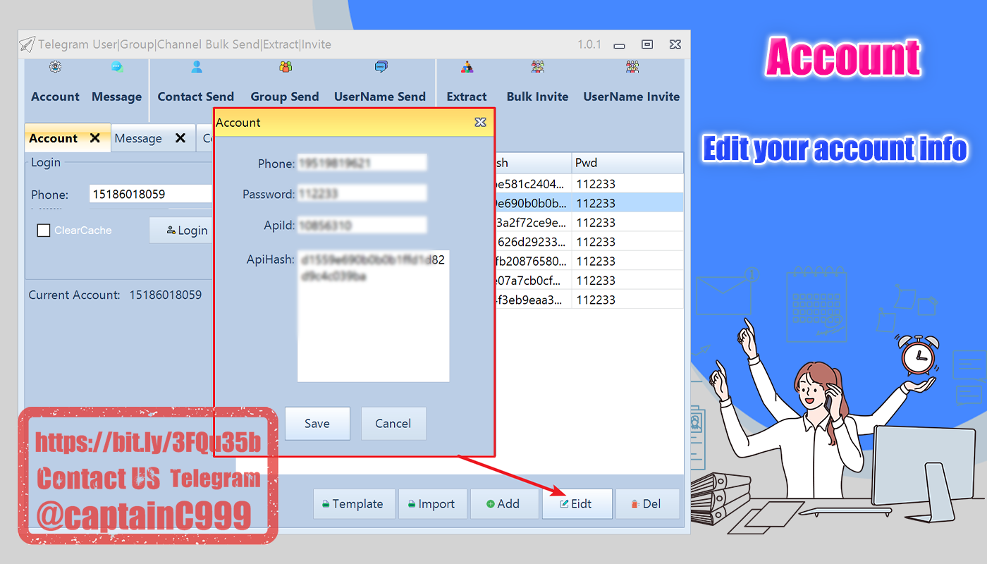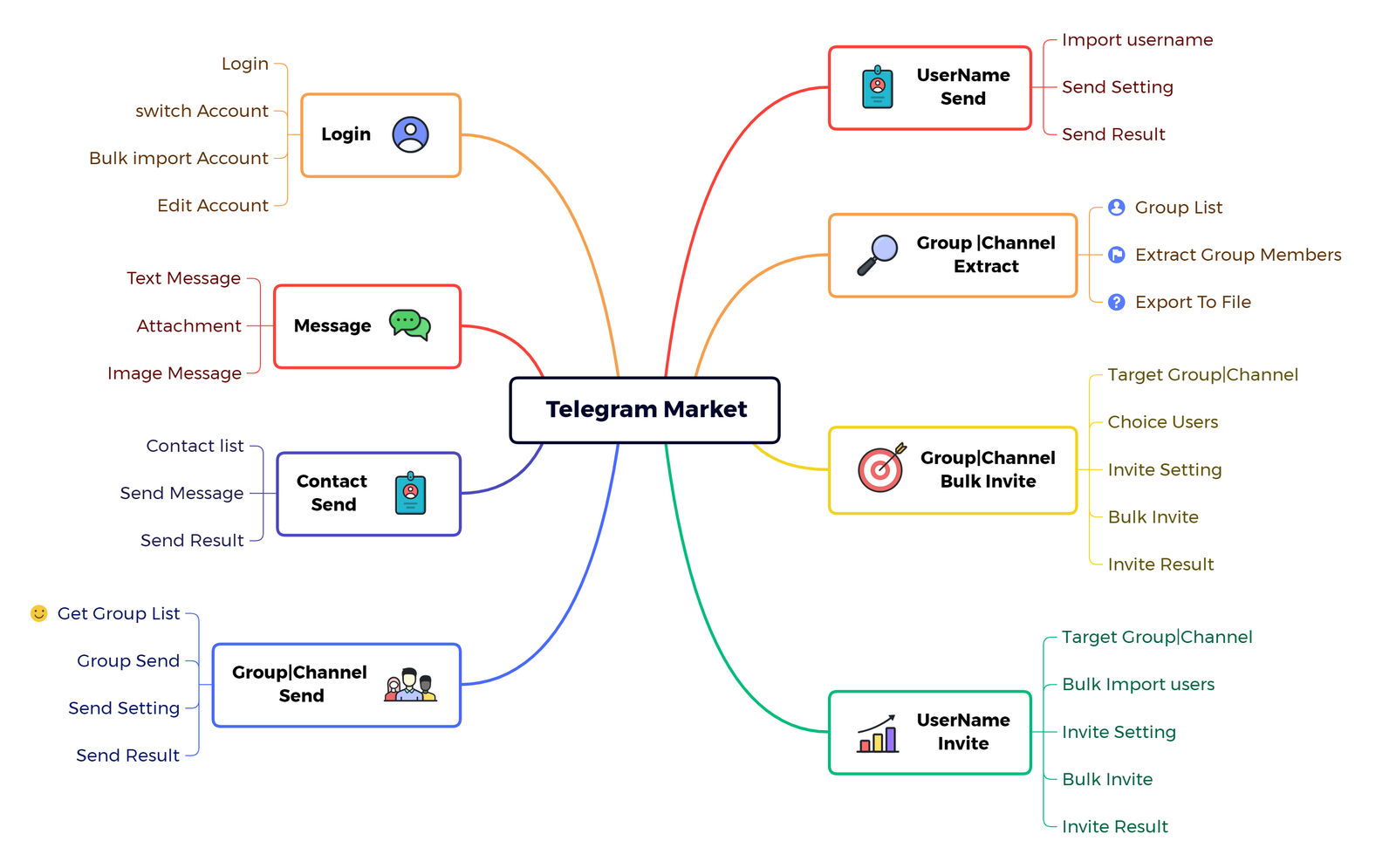 Bulk Account Manage,Bulk Message,Bulk Send Message,Bulk Extract Members, Bulk Invite Members etc
