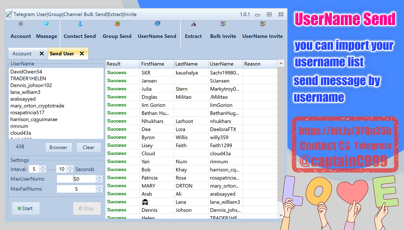 ✅Send bulk messages by userName list