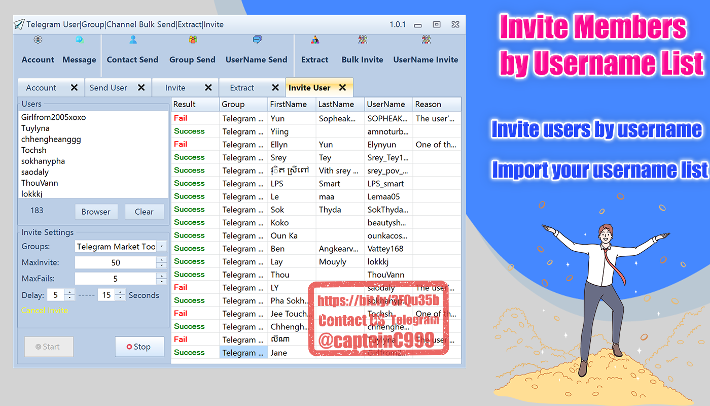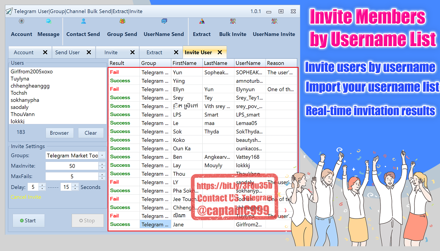✅Support Bulk Inite users to your group|channel by UserName List