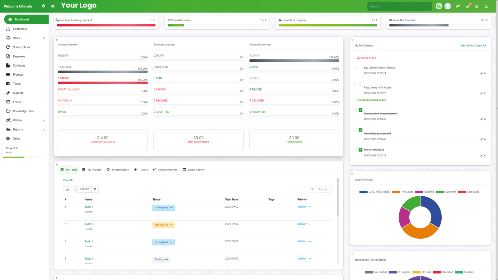 Modern visual elements, animation effects and much more make up our additional design module for Perfex CRM.