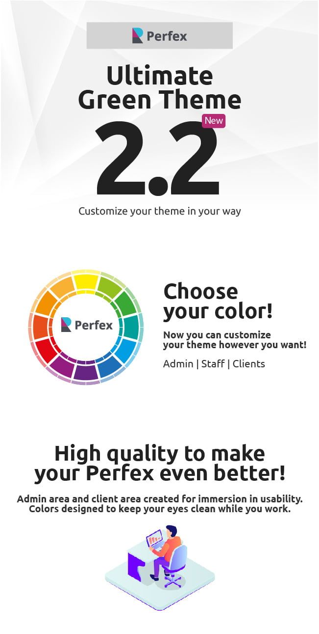 [New] new ability to change theme color directly from panel. You can now choose the colors you like for your theme and it will be applied immediately. [Improved] Code CSS performance. [Improved] CSS code quality. [Fixed] ability to change CSS files directly by Perfex theme. [Fixed] on mobile CSS bug in header menu.