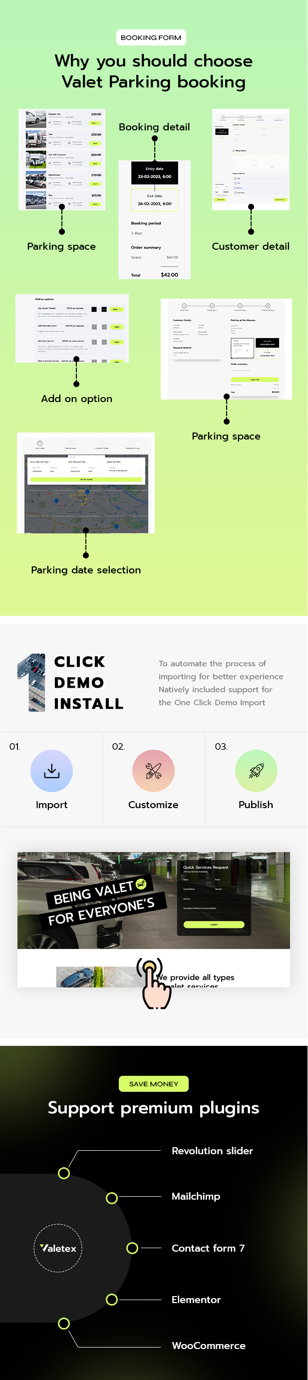 The theme includes all the important inner pages such as stunning Homepages, About us, Services, Projects, Locations, Contact Us, Team, Blog, Reviews, Career, FAQ, Book Parking and everything else required to successfully create a website. The theme is veritably easy to customize with Elementor live page builder and RTL Supported it has a lot of features and strong admin panel for any customer to make a good website quickly.