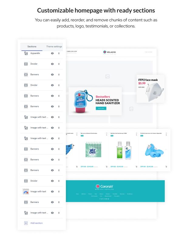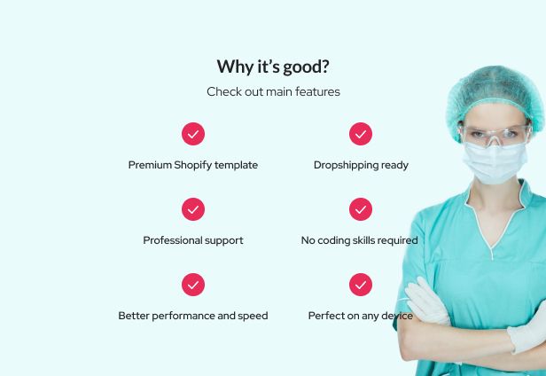 The team of professional presents this fully-responsive medical supplies Shopify theme that will help to create an online store specialized in selling medical first-aid items, or any other essential medical supplies.