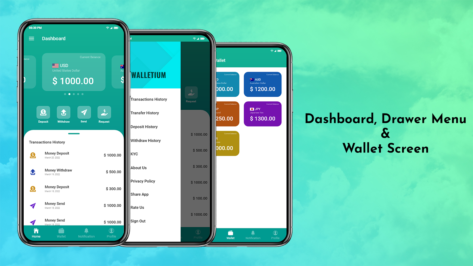 Walletium is a full application template of Advanced Digital Mobile Wallet Flutter App. It is an automated and manual payment gateway and money transfer system for web and mobile apps platforms. It’s a system for investment that can be used for various purposes. It comes with features like send, request , transfer money, deposits, withdrawals, bonus, so on and so on. If you are interested to develop your own Advanced Digital Mobile Wallet in Android and iOS app. So Walletium is perfect for yours. It is full application UI KIT developed by Flutter. It contains 30+ awesome screens with various kind of UI. It’s made a lot easier for all developers. Anyone can run apps by following the project instructions.
