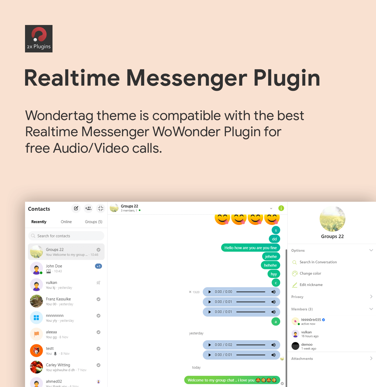 Compatible with the best Realtime Messenger Plugin. Get plugin here