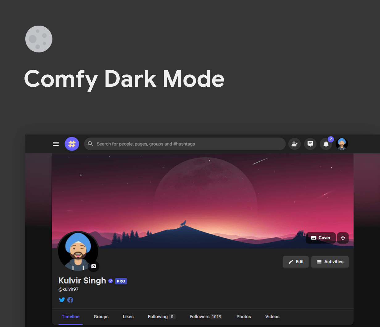 v2.0 (4 March 2021) - Added Compatibility with WoWonder v3.1 - Added Theme Options - Added new Header design (Enable in Theme Options) - Added new Welcome page design (Enable in Theme Options) - Added Click to Expand Search in Header on Mobile (Enable in Theme Options) - Added Infinite scroll products in Market (Enable in Theme Options) - Added Trending Hashtags in Sidebar (Enable in Theme Options) - Added Auto Dark Mode (Enable in Theme Options) - Added Profile Picture Changer in the Group - Fixed RTL Layout issues - Fixed 10+ bugs